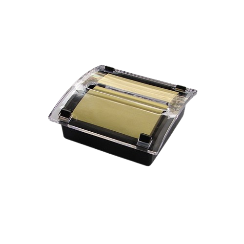 Dispensador de MemosDescripción: Dispensador de memos con 50 hojas adhesivas, base negra y tapa cristal.Material: plástico.Dimensiones: 10 cm x 10,5 cm x 3,5 cm.